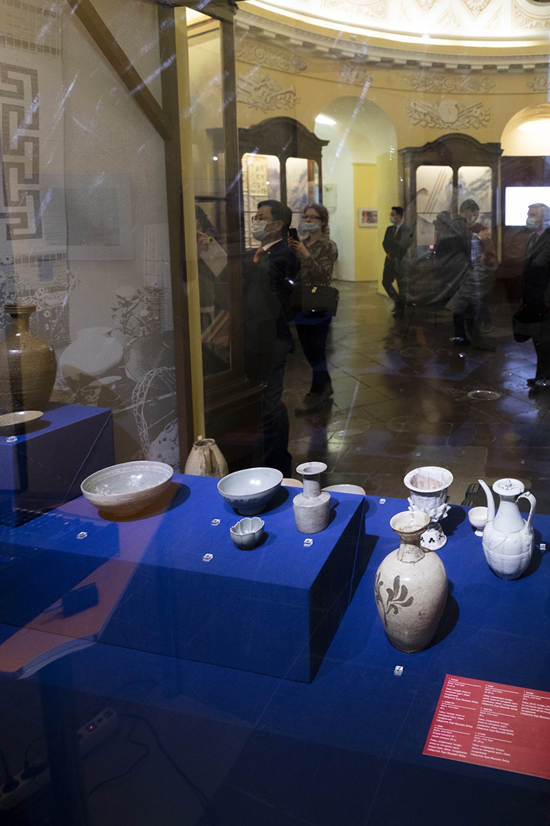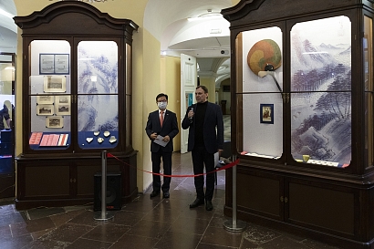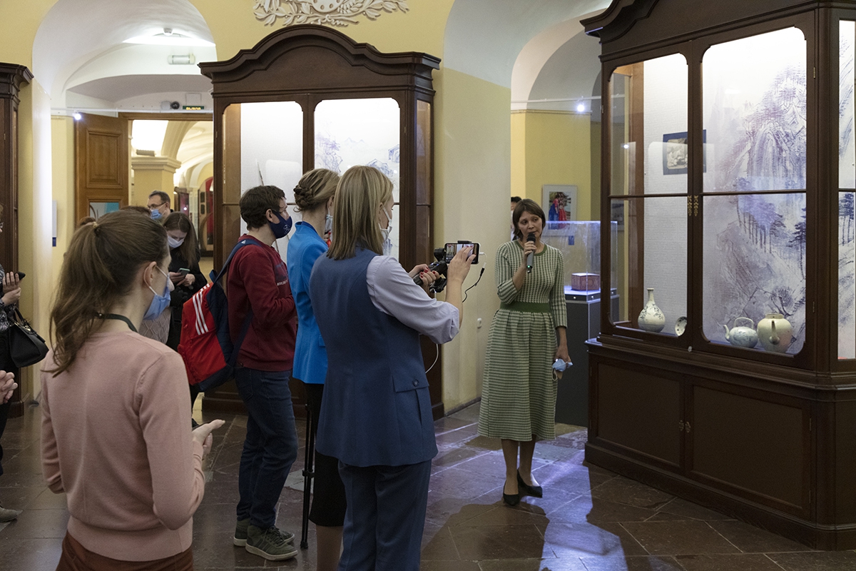 Objects collected by Karl Weber and preserved in the repository of Kunstkamera are displayed in the showcases. During the curator’s tour, Polina Rud, scientific consultant of the exhibition and junior researcher of the Department of East and Southeast Asia gave a detailed account of these objects.
