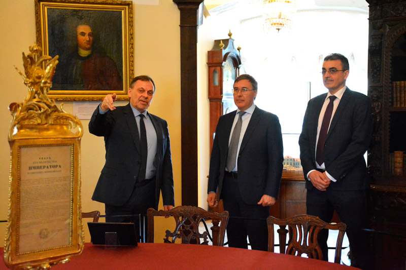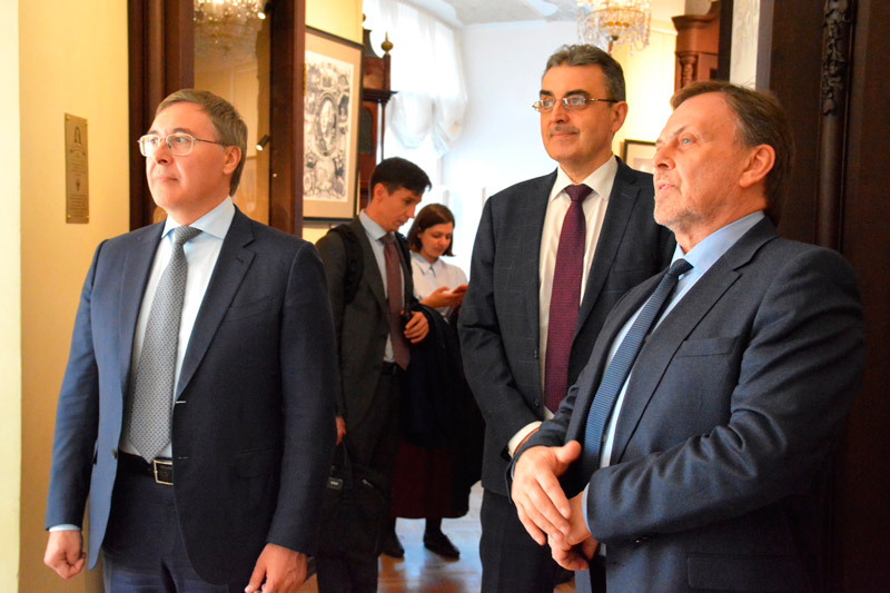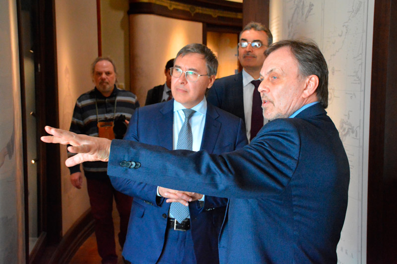 Также глава Минобрнауки ознакомился с экспозициями «Академический зал. Музей Ломоносова», повествующей о деятельности ученого и Академии наук XVIII века; «Астрономический зал. Обсерватория», посвящённой истории астрономии и первой астрономической обсерватории; «Готторпский глобус. Планетарий», где представлен первый экспонат музея.